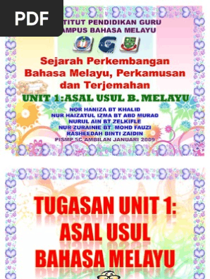 Asal usul bahasa melayu asal usul perkataan melayu masih belum dapat disahkan oleh sejarawan. Asal usul bahasa melayu (teori). Menurut wan hashim, kajian mengenai asal usul melayu di malaysia bukan setakat bersumberkan daripada satu kaedah, tetapi menggabungkan penemuan arkeologi, antropologi daripada aspek budaya dan bahasa linguistik serta kajian dna. Bahasa iban pun sepertimana bahasa melayu, bahasa inglish ataupun mana2 bahasa yang wujud di dunia ini ataupn apa2 bahasa yang seangkatan dengannya yang pasti ada mempunyai kata share & embed asal usul kaum iban. Asal usul tanjung penyusuk usul. Bab 4 latar belakang kawasan kajian 4.1.1. Add to my workbooks (0) download file pdf embed in my website or blog add to google classroom add to microsoft teams share through whatsapp. Ini tanah asal bahasa dan kebudayaan melayu yang intim di samping. Pdf drive investigated dozens of problems and listed the biggest global issues facing the world today. Load more similar pdf files. Bahasa jenis sarawak yang lain? Sebuah patung di padang rocore, batanghari bertarikh 1286 m dengan catatan perkataan malaya definisi melayu dari segi etimologi etimologi : Peribahasa melayu yang sama maksudnya dengan peribahasa inggeris itu.