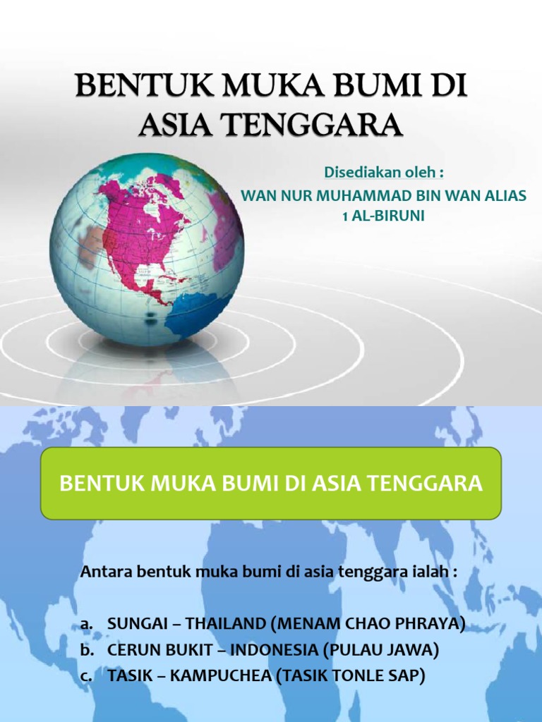 Bentuk muka bumi other contents: Bentuk permukaan bumi, ada yang melengkung. Menjelaskan dengan contoh sungai dan tasik utama di asia tenggara soalan : Kedua kawasan memiliki bentuk permukaan bumi yang sama. Menjelaskan dengan contoh bentuk mukabumi proses tindakan air mengalir (sungai) akibat hakisan dan pemendapan. Fakta menarik mengenai bentuk muka bumi negara asean. Gerakan ini akan mengubah bentuk muka bumi dalam waktu yang sangat lambat hingga membutuhkan waktu lama. Kawasan tanah pamah di asia tenggara. Bentuk muka bumi di wilayah lautan merupakan daerah yang tergenang oleh air laut dan. Benua asia mencakup 8,7 % dari total luas permukaan bumi dan terdiri dari 30 % luas daratannya. Banjaran tinggi berpunca dari banjaran himalaya di utara dan menganjur ke asia tenggara bermula di. 25 latihan pengukuhan nyatakan dua buah gunung berapi di asia tenggara yang masih aktif a. Cari perkataan di dalam kotak yang di.